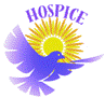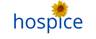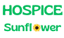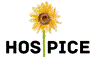 Flor do girassol adjacente ao nome do hospice a esquerda |