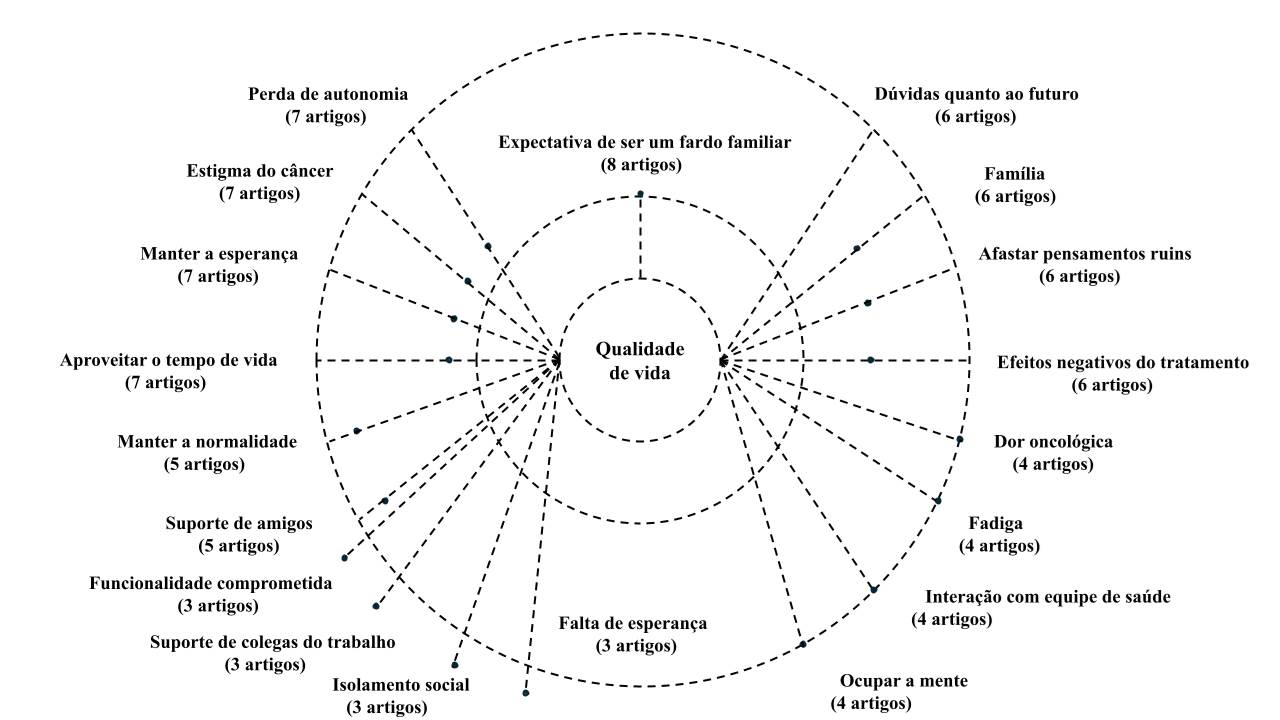 Figura 3. Síntese qualitativa de fatores associados à qualidade de vida dos pacientes durante o tratamento do câncer avançado