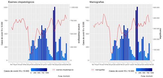 No início da pandemia, em 2020, o Instituto Nacional do Câncer (INCA) recomendou o adiamento dos exames de rastreamento e a priorização da investigação diagnóstica e do tratamento dos casos positivos ou sintomáticos. Posteriormente, em 2021, dada a situação epidemiológica e a capacidade de resposta do sistema de saúde em nível local, foi recomendada a retomada dos procedimentos de rastreamento, com foco na priorização da confirmação do diagnóstico e do tratamento9.