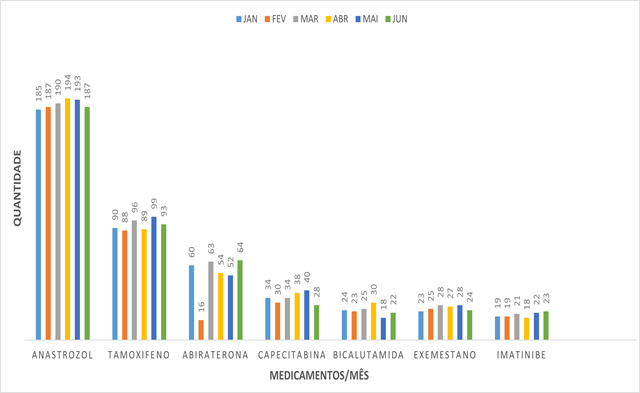 No Hospital do Câncer II do INCA, a maior parte dos pacientes atendidos na farmácia ambulatorial fazia uso do anastrozol e tamoxifeno24.
