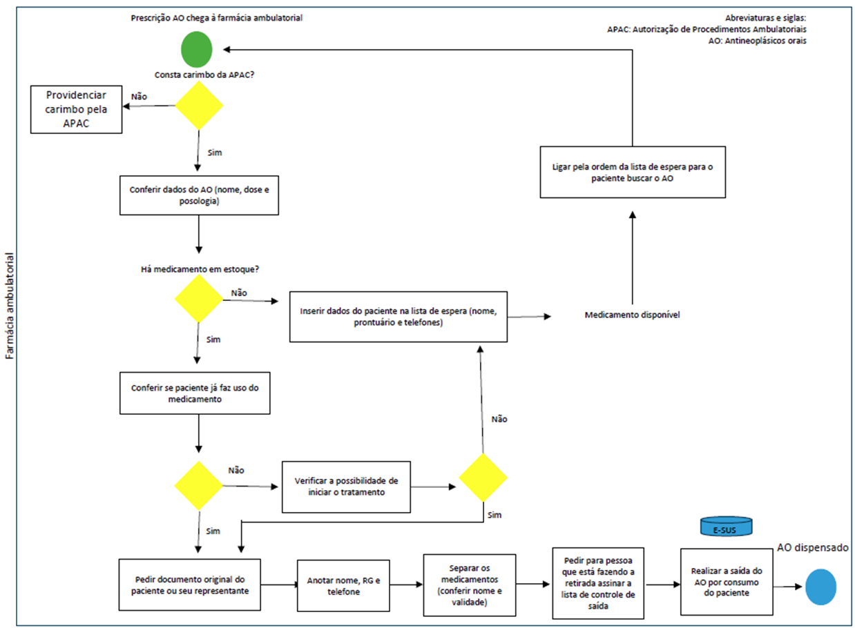Fluxo de trabalho da dispensação de antineoplásicos orais da farmácia ambulatorial