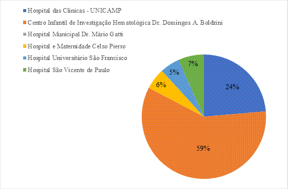 Os resultados mostraram que a oferta de atendimento para o tratamento de câncer em crianças, adolescentes e adultos jovens na Região de Campinas-SP nos últimos 21 anos (2000 a 2020) teve como principais centros de atendimento o C.I.I.H. Boldrini, o Hospital de Clínicas da Unicamp, o Hospital Municipal Dr. Mário Gatti, o Hospital e Maternidade Celso Pierro, o Hospital Universitário São Francisco e o Hospital São Vicente de Paulo, sendo os dois primeiros os hospitais com maior número de pacientes.