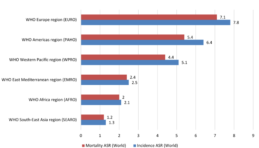 Figure 2. Incidence and mortality rates per 100,000 habitants from the WHO International Agency for Research on Cancer (IARC) in different populations