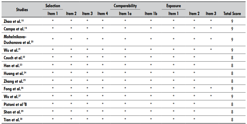 Table 1. Methodological quality of the studies based on NOS