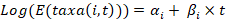 E(taxa(i,t)) = Taxa de incidência esperada na idade i, no ano t, tendo αi, β e βi como parâmetros.